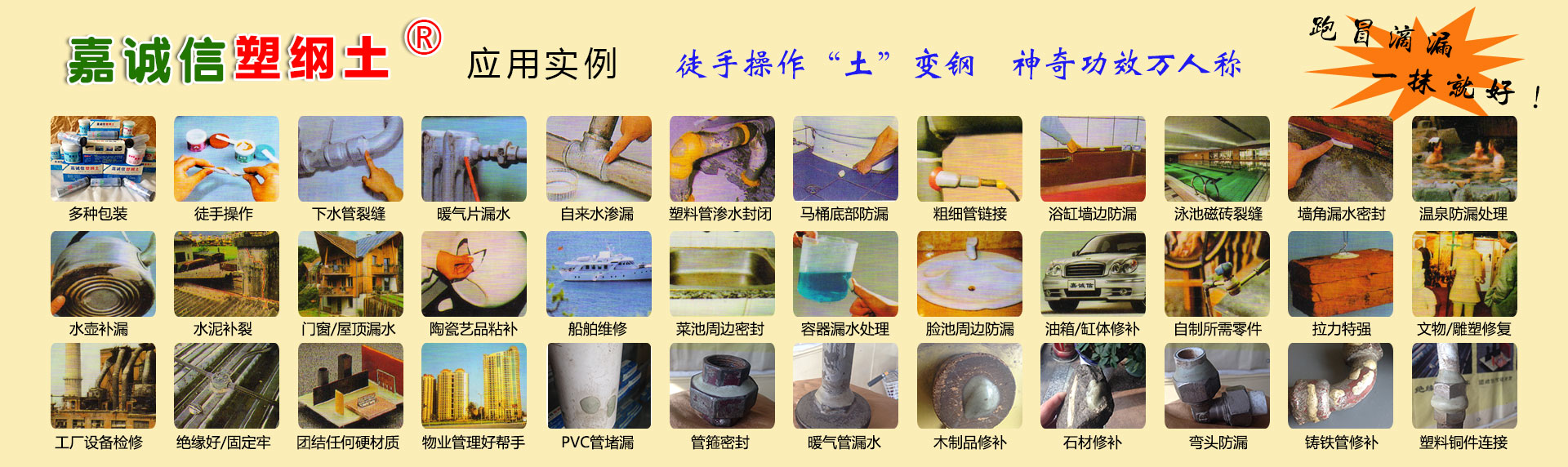 山西嘉誠信是中國塑鋼土品牌產品的合法專業廠家,《嘉誠信塑鋼土》是中國正宗合法之塑鋼土!其他任何人、任何廠家商家號稱的所謂“塑鋼土”均為假冒偽劣侵權之貨!